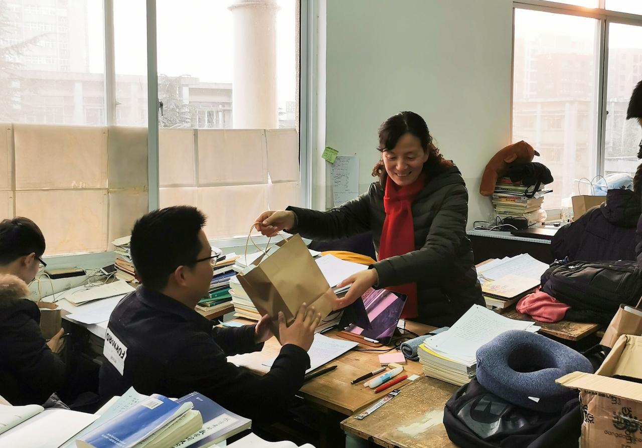 “考前清苦,你已坚持。考中沉着,决不言弃。相信自己,机械挺你!”12月19日下午,在5教505考研自习室,2020届机械考研员工们认真翻看着精美的慰问卡,脸上露出微笑。公司经理管锋、党委书记王红艳、党委副书记竺正海,辅导员杨琴、王喆、刘冬冬、向如等老师参加慰问活动。