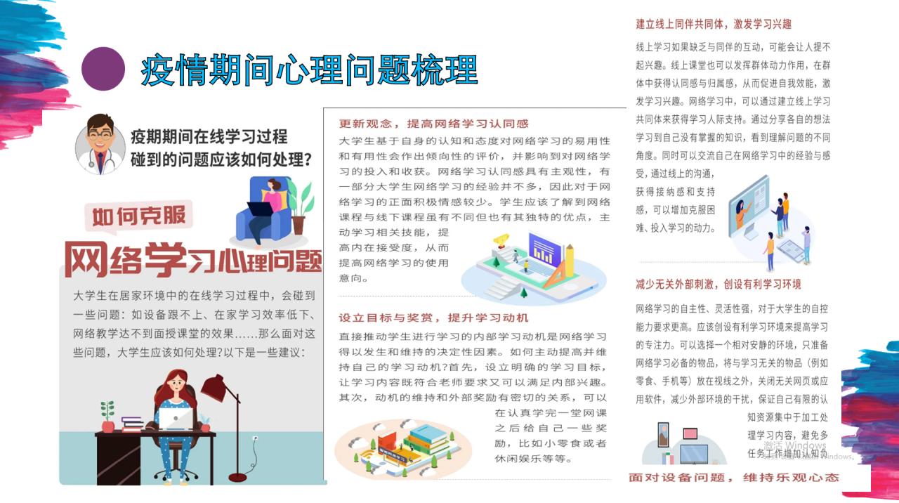 “如何克服疫情恐惧情绪?”“如何与父母相处?”“如何克服网络学习心理?”通过梳理老员工疫情期间的心理问题,详细学习心理专家的意见与建议。他希望大家留心科学信息,更新认识观念,遇到问题及时寻找心理援助。