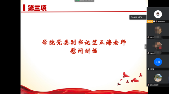 活动中,竺书记从三个方面对同学们进行了慰问鼓励,第一:扶贫更多的是扶志,希望同学们摆脱外界的干扰自立自强,树立远大志向;第二:珍惜人生中的每一段经历,不平凡的经历往往更能使一个人强大起来,得到别人的认可;第三:大学是奋斗的阶段,全方位提升自我,只有通过不懈奋斗才能拥有更好的选择。