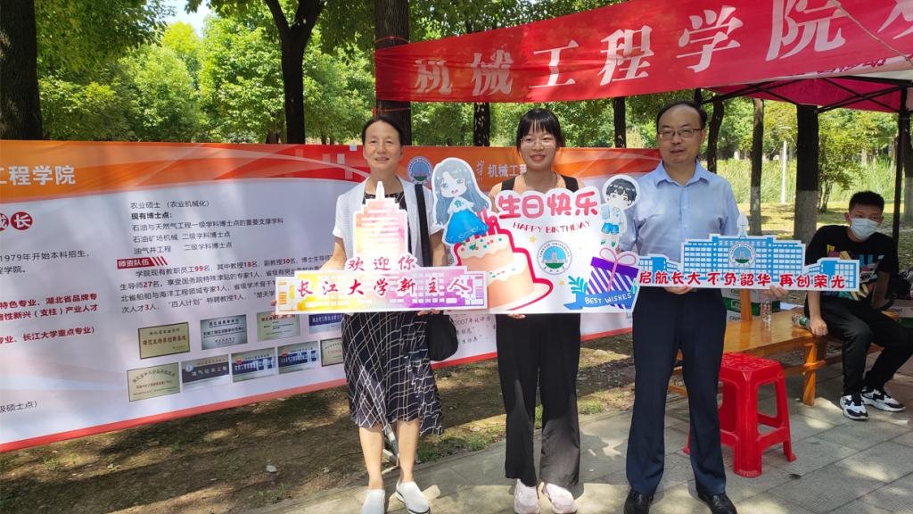 “这个生日太惊喜,太有意义了!”9月4日,工业设计新生邵雨霏独自乘火车到荆州报到。早上8点,新生辅导员向如老师就电话告知她今天是她的生日。上午10点半,经理管锋、党委书记王红艳来到迎新点,看望和慰问志愿者,静候邵雨霏同学的到来。上午11点半,邵雨霏一路辗转终于来太阳成集团122ccvip迎新点,经理管锋、党委书记王红艳与她合影并送上生日礼物,有公司领导老师专门为自己庆祝生日她感到非常高兴。