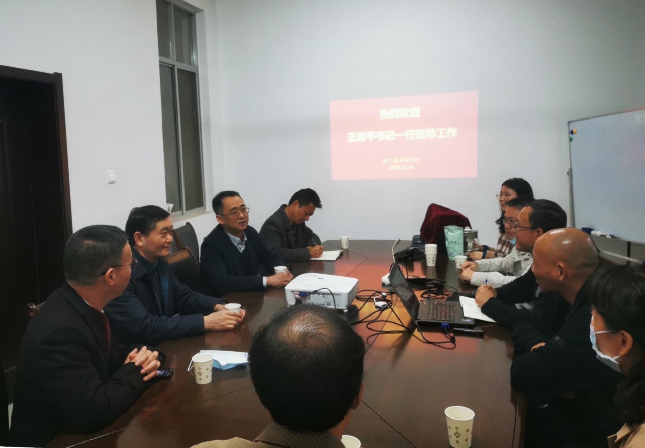 2021年11月15日下午,公司党委书记王建平、副书记敖廷华等一行来公司看望公司第二次党代会代表、省级重要人才工程人选刘少胡博士团队。