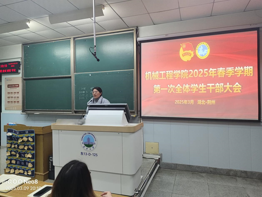 (通讯员:于皓宸)为增强师生间的交流,同时为新的学期进行规划,3月10日晚7点,公司2025年春季学期第一次全体员工干部大会在13教D125隆重举行。党委副书记丁明霞、全体专兼职辅导员老师以及公司主要员工干部参加会议。