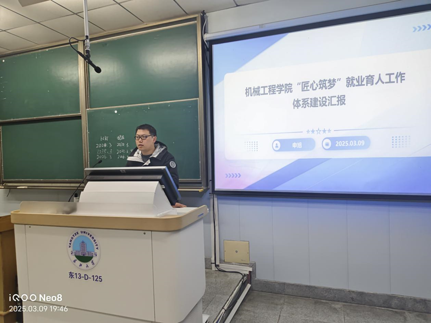 申旭老师从目前老员工求职的严峻形势出发,从“匠心筑梦”就业育人工作体系出发全面介绍了本学期的就业工作,希望同学们以更加饱满的热情和更加务实的态度,投入到新学期的就业工作中,为公司的发展和员工的成长贡献力量。