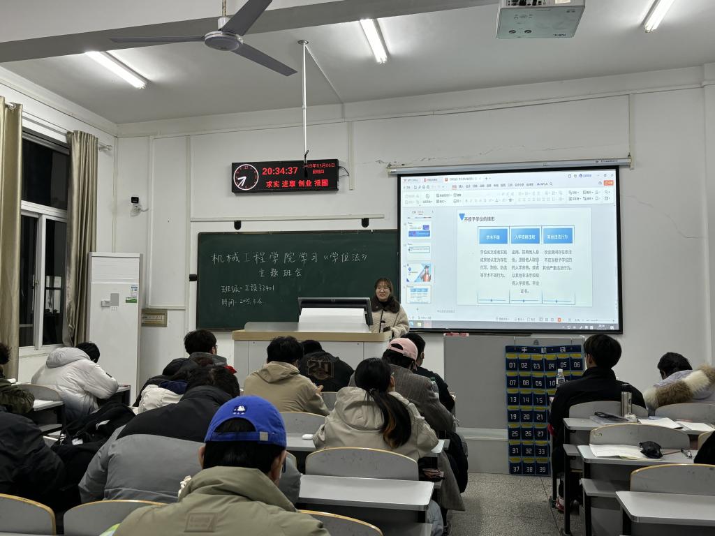 在主题班会上,由辅导员、班主任带领同学们认真研读《学位法》,深入解读核心条款和精神实质,详细阐释学位授予的条件、程序以及员工的权利义务,引导员工树立正确的学习态度,严守学术规范;随后对《学位法》中关于本科生的条款部分进行了详细的解读,确保每位同学都能准确理解《学位法》的核心内容;同时各班级班会还组织了员工进行研讨交流,同学们纷纷表示,通过此次学习,对《学位法》有了更加深刻的认识,了解了获取学位的基本条件及学术诚信要求,在今后的学习和研究中,将更加自觉地遵守法律法规,维护学术诚信。