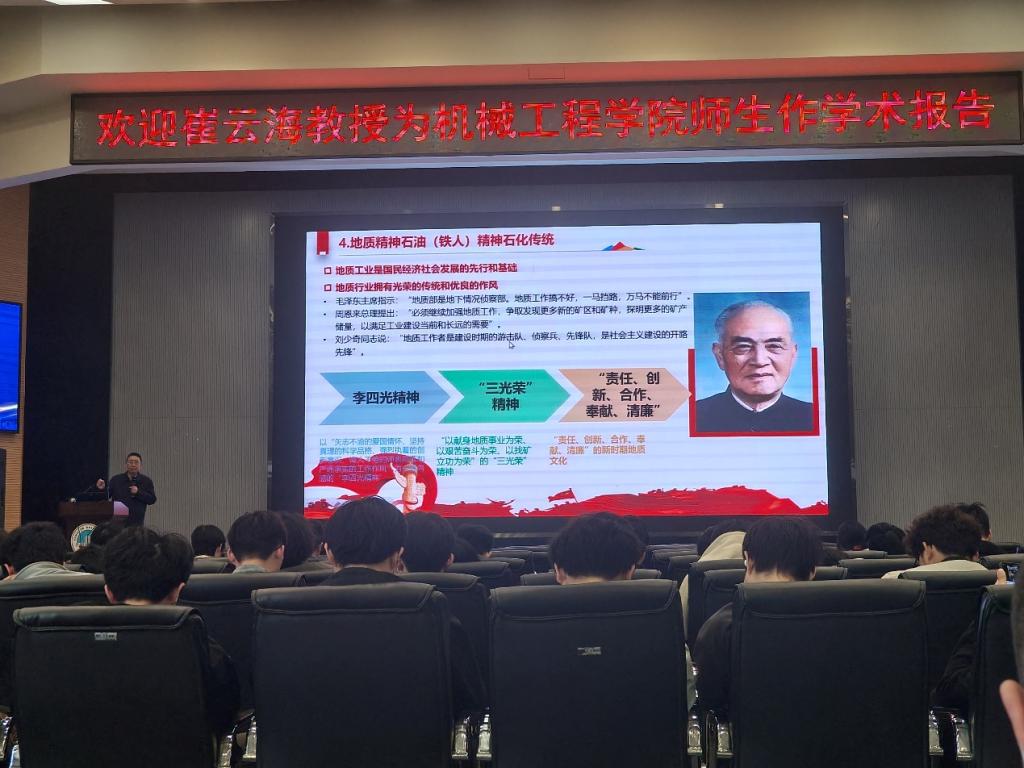 作为能源装备领域的资深专家,崔云海教授寄语青年学子:要传承“李四光精神”、“三光荣传统”,大力弘扬“大庆精神”、“铁人精神”;既要夯实专业基础,又要拓宽国际视野,努力成为“懂全局、知本行、观大势”的新时代工程人才。