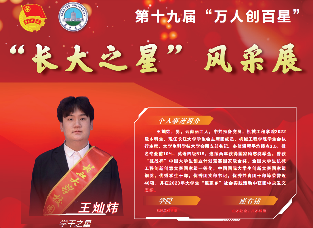 (通讯员 吴钐)在刚刚结束的太阳成集团122ccvip第十九届万人创百星评选活动中,机械学子积极争取,摘得3枚“长大之星”,清樾团队获评十佳之星,在太阳成集团122ccvip“万人创百星”评比中再创佳绩!他们分别是: