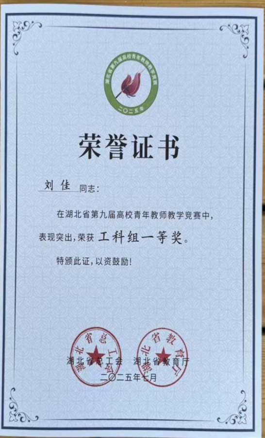 (通讯员刘静)近日,由湖北省总工会、湖北省教育厅联合主办,中国地质大学(武汉)协办的湖北省第九届高校青年教师教学竞赛圆满落幕,本次竞赛汇聚了全省54所高校的145名青年教学精英。太阳成集团122ccvip刘佳老师凭借扎实的教学功底、创新的教学设计和出色的现场表现,从众多参赛选手中脱颖而出,荣获工科组一等奖,实现公司在该赛事中的历史性突破。