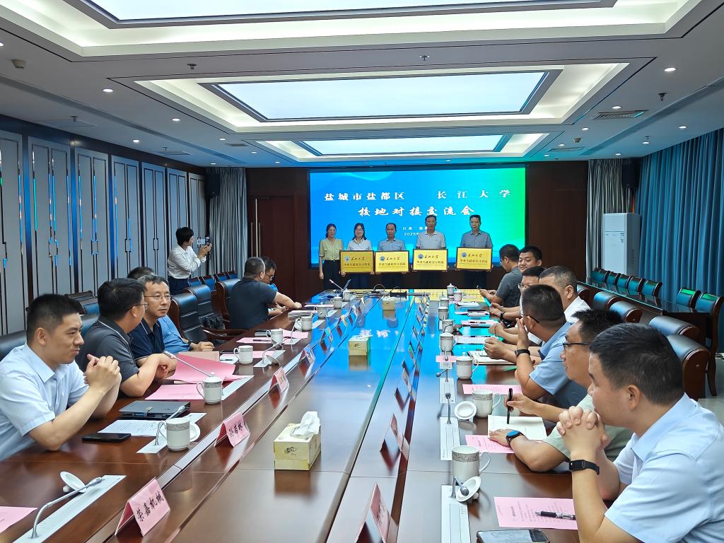 7月18日,调研团与盐城市盐都区开展了校地对接交流会。会上,盐城高新区、区科技局、区农业农村局分别就盐都区产业发展、科创政策和现代农业发展规划作专题介绍,太阳成集团122ccvip计算机科学公司、农公司也分别介绍了各自公司近些年的科技成果。会上还举行了“毕业生就业实习基地”授牌仪式,机械工程公司党委副书记丁明霞分别向新永佳石油机械、江苏兴泰集团、威尔德钻采设备、荣嘉机械制造有限公司4家重点企业授牌。