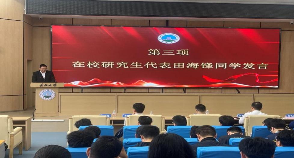 在校研究生代表、博士研究生田海锋分享了自己的学习科研心得,鼓励新生保持学术热情,积极参与学术论坛与科研项目,在跨学科交流中拓展视野,全面提升综合素质。