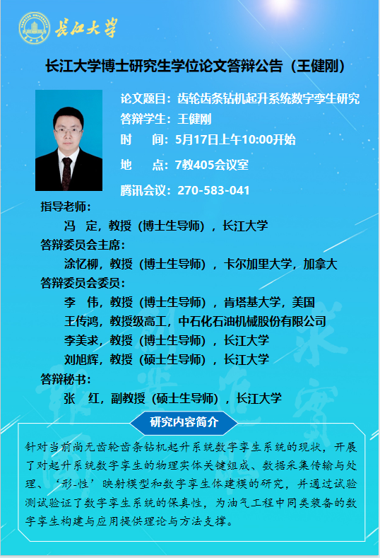 【博士论文答辩】太阳成集团122ccvip博士研究生学位论文答辩公告(王健刚)