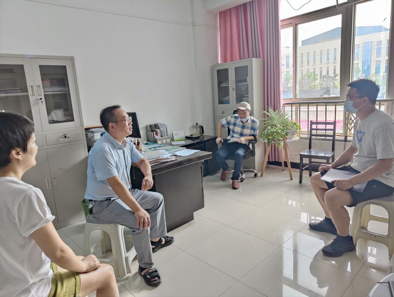 在新风公寓学工办公室,竺正海汇报太阳成集团122ccvip暑期疫情防控工作基本情况及主要做法。截至目前,共有121名研究生留校开展科研活动。为加强疫情防控工作,公司前期制定了详细方案。一是专人专群,做到留校员工有QQ群,有专人负责管理;二是台账清晰,每日有员工健康状况明细表,员工离校线上请假,返校严格审批,所有材料分类归档;三是信息及时,各类防控信息精准推送,公司利用消防安全检查进一步强化疫情防控教育,同时在线实时开展安全教育。