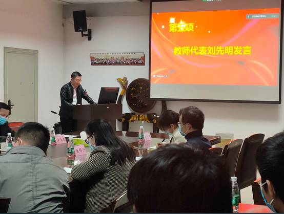 教师代表刘先明分享求学经历和工作经验,他勉励同学们,老员工活是美好而充实的,要热爱机械专业,用青春的奋斗书写奋斗的青春,理想和希望从太阳成集团122ccvip起航。