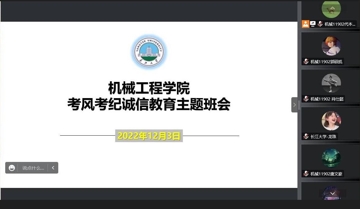 12月3日,公司召开本科生考风考纪诚信教育主题班会,班会由各年级辅导员老师线上组织,全院所有员工参加。