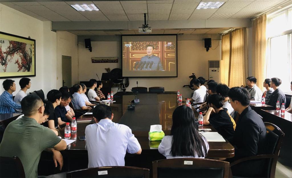 7月1日上午,庆祝中国共产党成立100周年大会在北京天安门广场隆重举行。中共中央总书记、国家主席、中央军委主席习近平发表重要讲话。机械工程公司党委中心组成员及员工代表在7教305会议室观看大会直播。