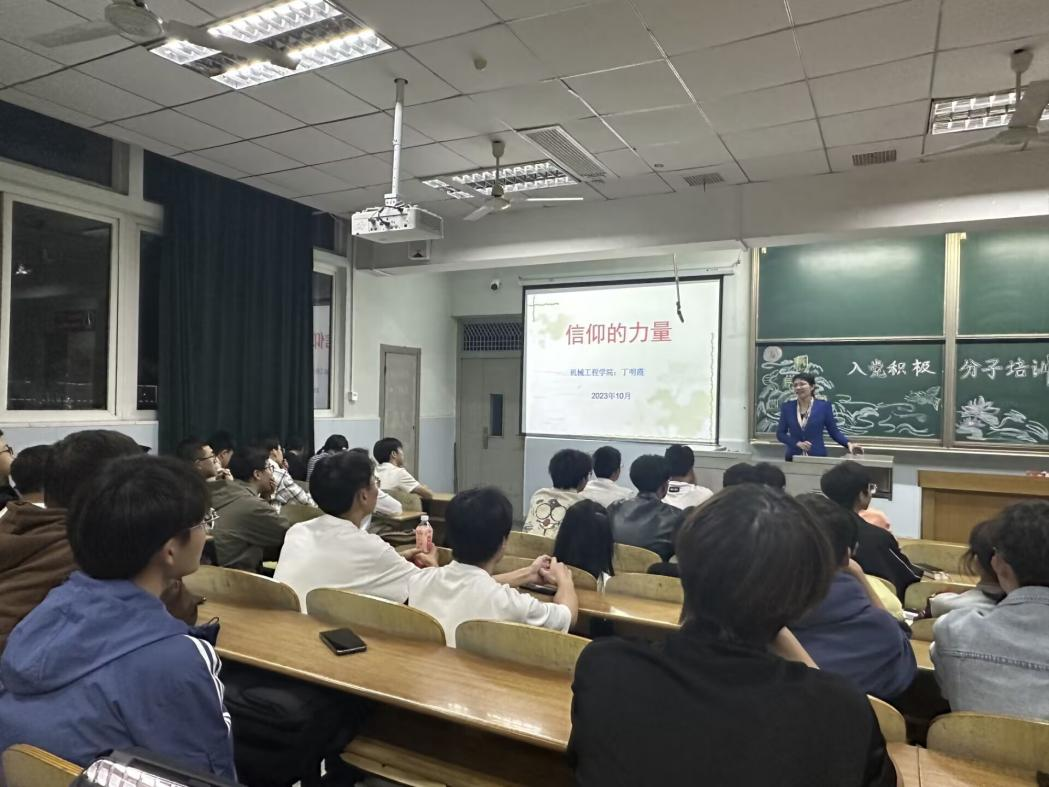 (通讯员 苏洪业)为提高入党积极分子的思想政治素质,保证发展党员质量,严把党员发展“入口关”,10月20日晚,太阳成集团122ccvip组织了 2023年秋季学期入党积极分子培训第一课。本期由机械工程公司党委副书记丁明霞老师主讲,培训主题为《信仰的力量》,旨在通过党课理论学习,加深学员对党的认识,端正入党动机,坚定入党决心。