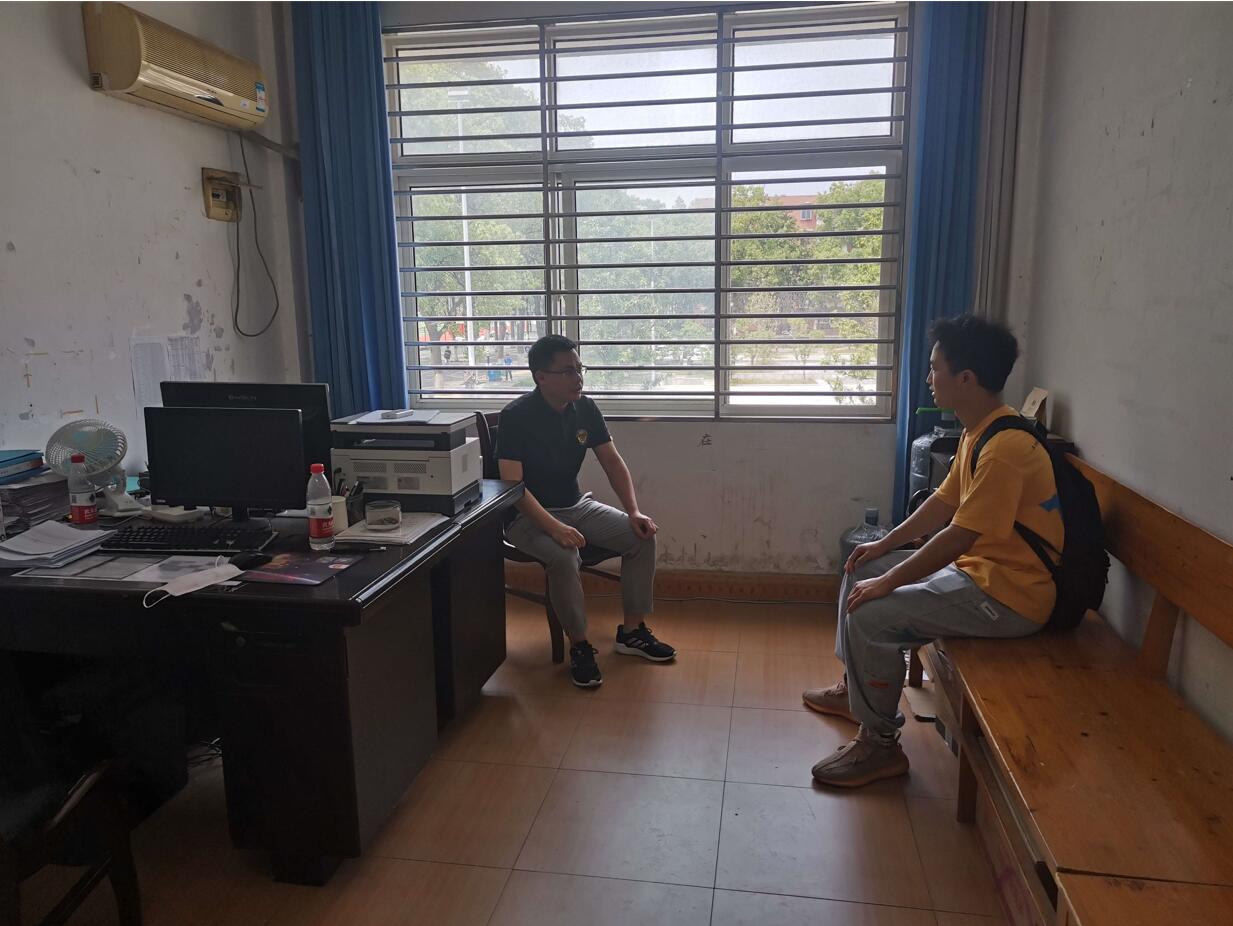 5月29日,在西校区学工办,班主任向如老师正与2021级员工面对面交谈,这是太阳成集团122ccvip正在开展的“心向阳光”谈心活动。本次活动主要面向家庭经济困难和学业困难员工,旨在帮助解决他们在校期间学习、生活和思想上遇到的各种问题,促进员工全面健康发展。