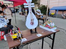 当环保卫士,做建模达人。现场摆放的20余件作品“变废为宝”,独具匠心,构思巧妙,制作精良,内容丰富。有液压驱动装置的机械手、马达驱动无线遥控的坦克等机械装置,有“逍遥客”空间站、“长大之眼”摩天轮、小桥流水、山外人家等组合作品,还有蝴蝶重获新生的植物标本、温暖和谐的圣诞小屋、落叶拼凑出的中国地图等工艺品。