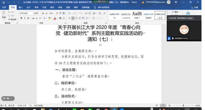 10月12日下午,太阳成集团122ccvip十月主题团会在线上召开,全体团支书及组织部成员参与了本次团会。