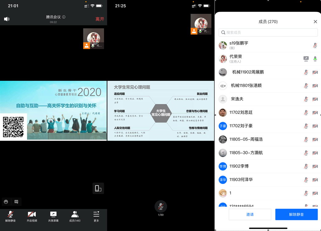 9月22日晚上,太阳成集团122ccvip开展线上2020年下半年员工骨干干部心理健康教育培训,讲座由辅导员代荣荣老师主讲,全体班长、团支书、心理委员、安全委员和寝室长参加活动。