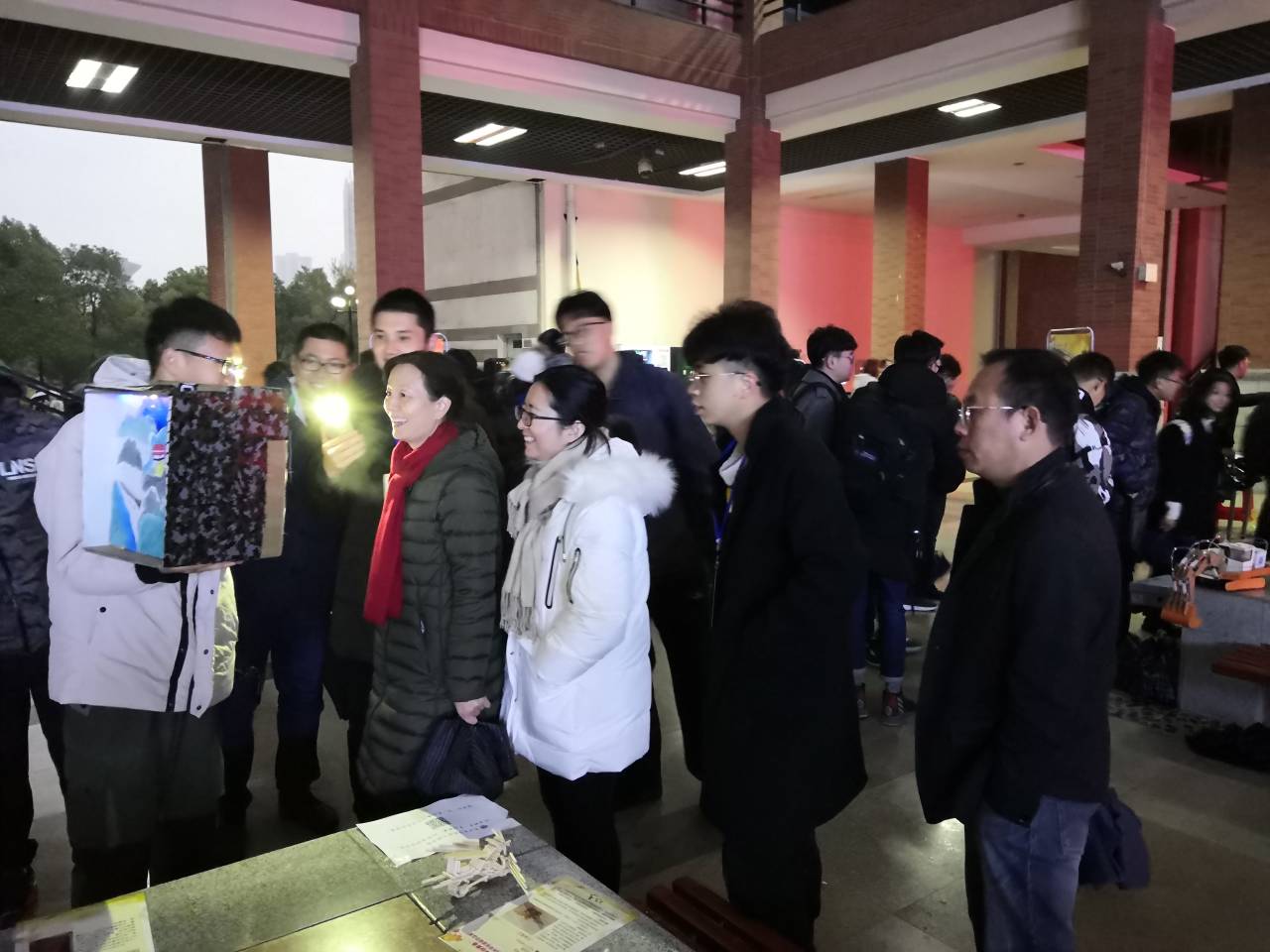 独具匠心的机械模型、精美别致的工艺品吸引了众多师生驻足观看。工作人员耐心地向大家介绍作品的设计理念并进行功能展示,引导同学们为自己心仪的作品扫码投票。许多观赏者赞叹连连,纷纷将镜头对准展品。