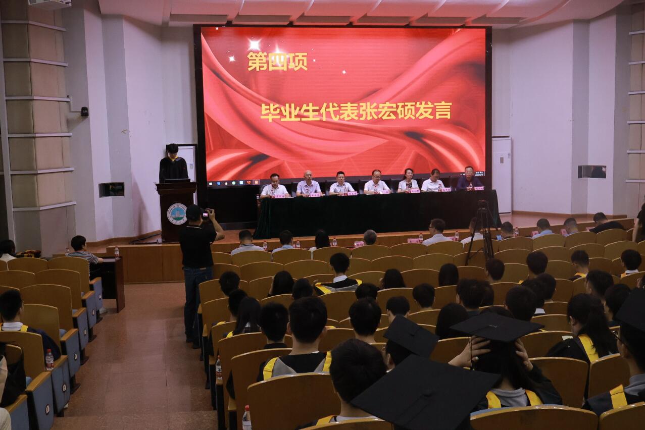 刘少胡教授作为教师代表发言。他希望同学们要坚定信仰,要坚持读书,做一个有理想、有底线、有智慧的机械人。