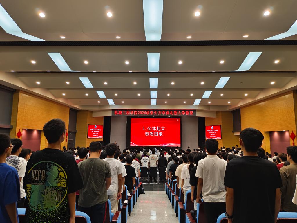 典礼伊始,全体新生肃立,伴随着庄严的国歌声,开学典礼正式拉开序幕。歌声嘹亮,新生们用饱满的热情展现了青年学子积极向上的精神风貌。