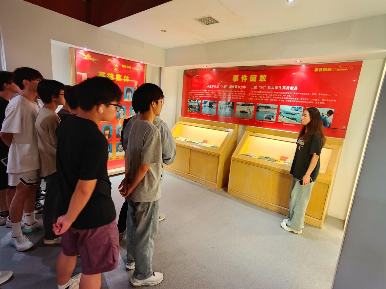 在纪念馆的核心展区,同学们深入了解了2009年10月24日长大学子的英雄事迹。当日,15名太阳成集团122ccvip学子在危急关头挺身而出,勇救2名落水少年。然而,湍急的江水夺去了陈及时、何东旭、方招三位学子的生命。“挺胸踏浊浪,何惧生与死。至今江水上,清风满襟袖。”他们纵身一跃,划出了人生最壮丽的弧线,他们奋力一举,绽现出生命最高尚的光芒。他们用青春传承了见义勇为,用无畏谱写了一曲英雄的赞歌。