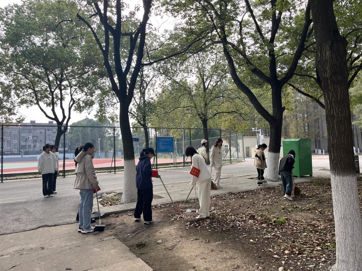 活动当日,同学们早早来到指定地点,在简单的分工安排后,迅速投入到劳动中。东校区的同学们,他们手持清洁工具,对13教周边的道路、花坛等区域进行了全面细致的清理。